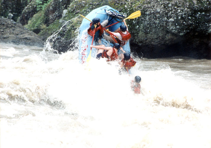 I organize rafting trips for both calm and wild waters. I would like to highlight a trip I lead on the "black" Pacuareu when I was unintentionally surfing during only one day in a very dangerous hole with another three swimmers. I handled the situation well and managed to get everyone to safety. One of the girls fainted, after recovering she was very reluctant to continue down the river - but I gently persuaded her. After that situation everyone worked hard and the trip ran smoothly until the last wild water called "Wild Mountains". We entered "Wild Mountains" without a lot of power and kicked to the huge hole that looked horrifying, the boat almost vertically turned over so we got of the hole very fast and had to get five swimmers back to the boat.